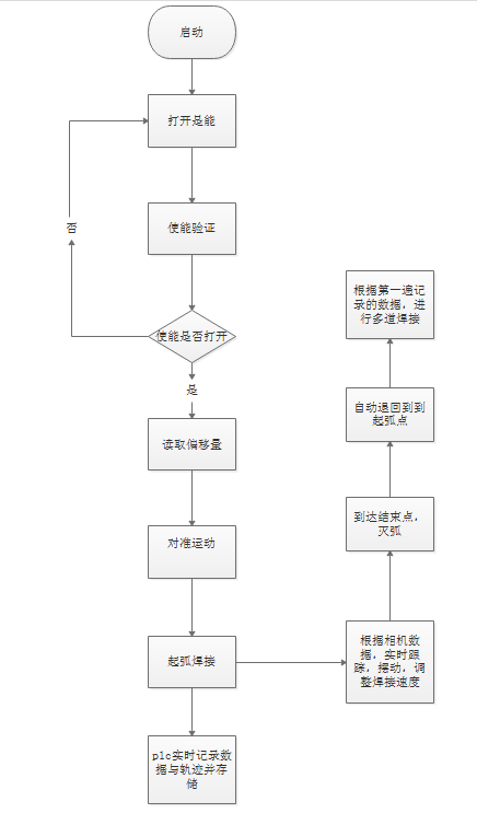 5.再按下原設(shè)備的啟動按鈕,并起弧焊接,直到接收到原設(shè)備的結(jié)束信號,則自動停止跟蹤和焊接;
