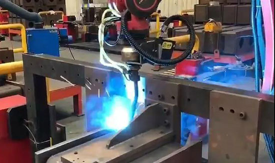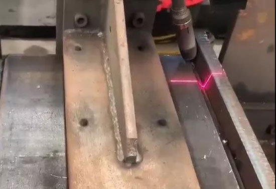 鋼結(jié)構(gòu)連接箱法蘭焊接,針對(duì)下料不準(zhǔn),加裝激光焊縫跟蹤來修正形位誤差