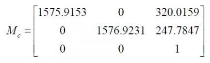 得到攝像機(jī)內(nèi)參數(shù)矩陣: