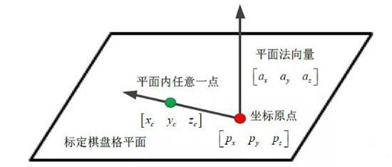 標(biāo)定棋盤格平面內(nèi)任意一點(diǎn)與法向量關(guān)系: