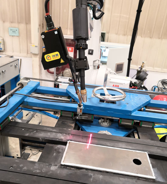 創(chuàng)想機(jī)器人焊縫跟蹤器原理是, 固定激光視覺(jué)傳感器在焊槍正前方, 通過(guò)直接觀察焊槍與焊縫中心線的位置關(guān)系, 提取偏差信息, 輸出糾偏控制電壓。