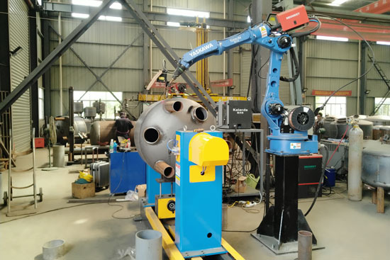 以壓力容器為例。大多數(shù)壓力容器都有一個噴嘴組件。由于焊接的技術(shù)特性,傳統(tǒng)上只用手工焊接,這是一個多道工序,涉及許多起止點和頻繁的重新定位。焊接噴嘴非??量蹋瑢τ诤腹碚f,坐在那里手工焊接噴嘴是一個巨大的工作任務(wù)。這就是使用機器人自動化的好過程的原因之一。