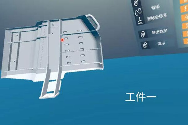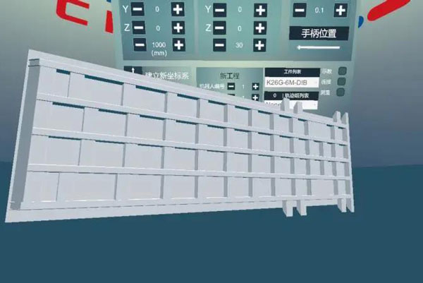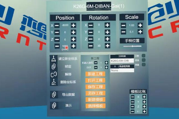 界面空間好似進(jìn)入一個模擬仿真的房間,操作面板位于中間位置,可以調(diào)節(jié)工件在空間中的位置、調(diào)整工件或坐標(biāo)系的角度旋轉(zhuǎn)、調(diào)節(jié)放大比例(對于工件大小方便觀察可以進(jìn)行放大縮小)。
