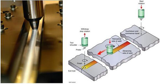 固態(tài)連接過程(金屬不熔化),需要旋轉(zhuǎn)的刨機(jī)施加壓力和摩擦力來熔化金屬。該方法在連續(xù)焊縫方面表現(xiàn)出色,并且需要的耗材極少,并且無需填充金屬。它也是連接厚度為0.5至65 mm的合金或異種金屬的理想選擇。