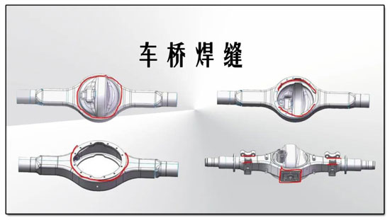 車橋焊接的眾多焊縫中,變形軸管與橋殼的兩條環(huán)焊縫尤其關(guān)鍵,它與驅(qū)動(dòng)橋殼形成一體,使左右驅(qū)動(dòng)車輪的軸向相對(duì)位置固定,一起支承車架及其上的各總成質(zhì)量,同時(shí)在汽車行駛時(shí)承受由車輪傳來的路面反作用力和力矩,并經(jīng)懸架傳給車架。