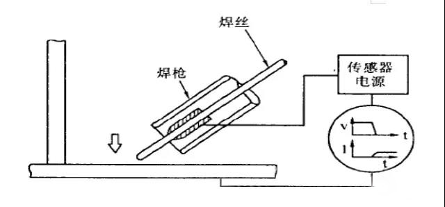 電弧傳感器是一種常見的焊縫跟蹤傳感器。通過電弧相對焊縫的擺動,直接利用焊接電弧參數(shù)的變化計算出焊槍至工件的距離變化量,進而計算出坡口的位置形狀信息。電弧傳感器的優(yōu)點是不需要在焊槍上添加附加設備,成本低廉,缺點是對焊縫坡口形狀依賴較大,只適應一些對稱坡口焊縫。