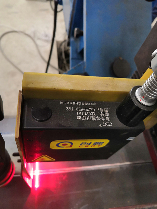 如何解決這類問題呢?今天小創(chuàng)為大家?guī)砹顺墒斓慕鉀Q方案。北京創(chuàng)想智控獨(dú)立研發(fā)的焊縫跟蹤器來幫您解決這類問題,創(chuàng)想智控有專業(yè)研發(fā)和應(yīng)用團(tuán)隊(duì),以及近十年的研發(fā)實(shí)戰(zhàn)經(jīng)驗(yàn)。創(chuàng)想焊縫跟蹤通過專用的安裝支架將跟蹤器安裝在焊槍前方且與焊接方向一致。跟蹤器發(fā)射出一條線激光,通過三角光學(xué)原理以及我們獨(dú)特的算法將工件高度、左右方向上的偏差實(shí)時(shí)的傳給PLC或機(jī)器人,通過運(yùn)動(dòng)機(jī)構(gòu)實(shí)現(xiàn)自動(dòng)對槍。滿足每一條焊縫精準(zhǔn)焊接。同時(shí)之前一人看一把槍,現(xiàn)在一人可以看多把,節(jié)約了大量的人力。