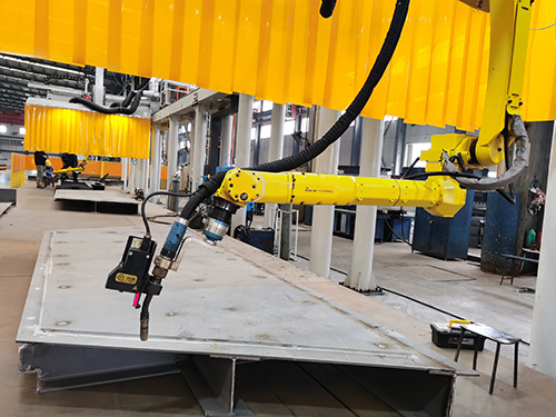 饋回來的偏差數(shù)據(jù),實時去修正焊槍的位置,能夠解決焊接過程中出現(xiàn)的熱變形問題以及工件下料所帶來的板材彎曲問題,其精度高,穩(wěn)定性好,且操作簡便,很好的提高了焊接設(shè)備的實用性以及穩(wěn)定性。