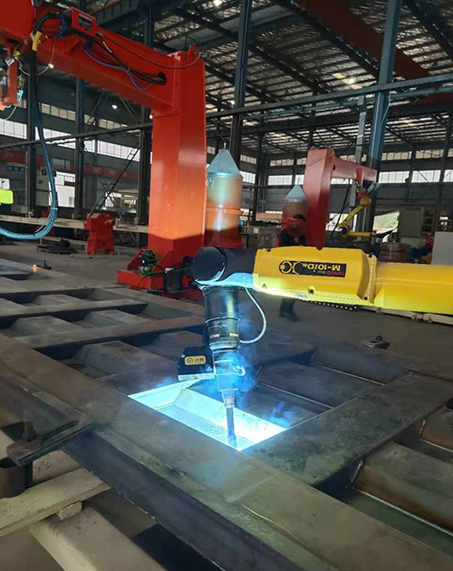激光視覺傳感器通過激光條紋掃面焊縫,獲取焊縫的截面積、焊縫的間隙以及焊縫的左右錯(cuò)邊高度等參數(shù),配備先進(jìn)的機(jī)器人接口,將數(shù)據(jù)傳輸給機(jī)器人,機(jī)器人能夠根據(jù)激光跟蹤視覺傳感器掃描焊縫的截面參數(shù)來實(shí)時(shí)調(diào)整焊接擺幅、擺動(dòng)頻率、擺動(dòng)左右停留時(shí)間、焊接速度、焊接電流電壓,實(shí)現(xiàn)高速高質(zhì)量的自適應(yīng)焊接。