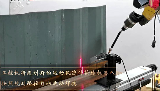 工控機將規(guī)劃好的運動軌跡傳輸給機器人,按照規(guī)劃路徑自動運動焊接。